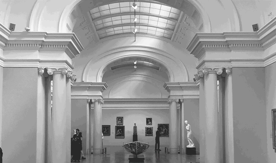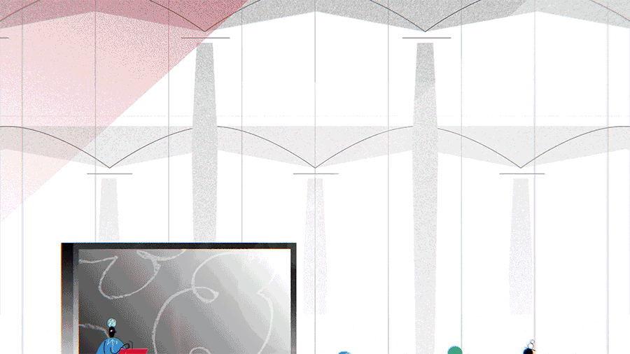 The Art Gallery’s space has plenty of instantly recognisable, defining features that we love, ranging from the modern, triangular roof canopy, to the historic cornices that surround the building. Taking inspiration from the building’s architectural character, the team built the animated video’s backgrounds around an impressionistic view of the Gallery’s space. We placed emphasis on the depth and spaciousness of the rooms by rendering light rays and keeping details minimal, which gave us plenty of breathing room to insert upbeat, animated texts for effective messaging. The grainy texture used was inspired by the stone texture present throughout the building, and the addition of fine, hand-drawn lines add a touch of sophistication.
